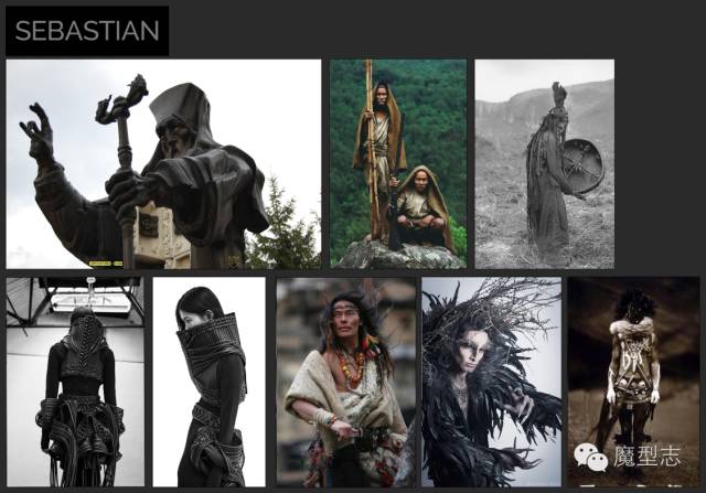 Sebastian的概念设计是一个带着传教士一样的旅行者,在不断的保护着他的同胞,以及帮助他们恢复他们往日的个性。我们希望他看起来是非常原始的,他可能是第一个被驱逐的人,但是他也是怀揣着新的思想的人,一个新的开始,重生以及再生。设定加入了很多部落混合元素,额头以及胸腔有着救世主的象征的设计。他的材质也是经过我们再三的考虑,最后决定让他看起来就想一尊活生生的雕像。
