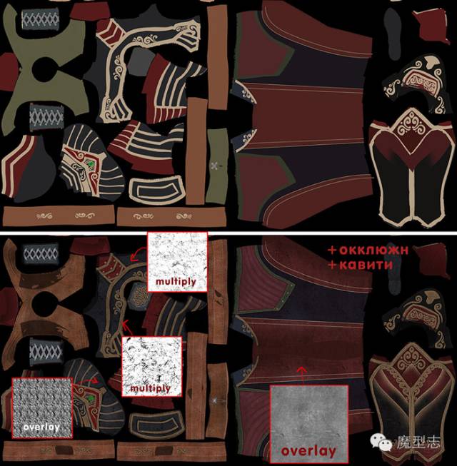同样胸部,我也使用了这个方法,来做了一些花纹。