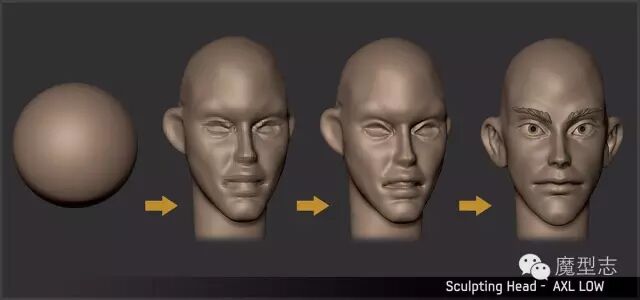 我选择单独去做一个人头,这并没有和身体连在一起,因为我想这个脸更加的风格化,单独的一个头的模型感觉制作起来会更自由,不用经常的切换隐藏身体的部分,以为他就是单独的一个模型,这个头我通过一个球来托啊托,拉啊拉,直到我满意。