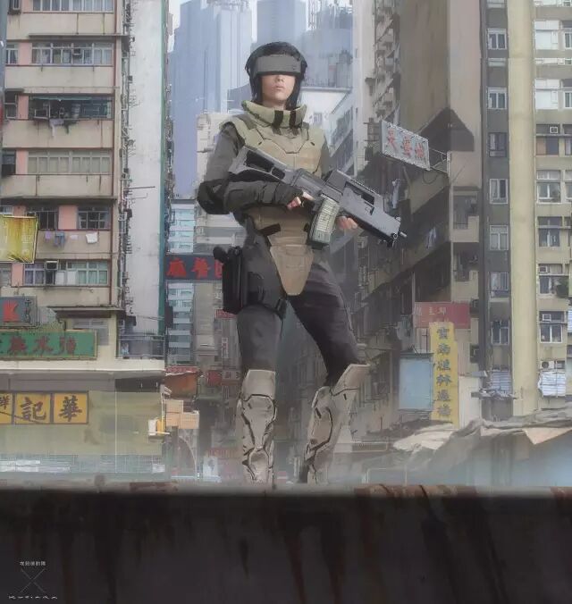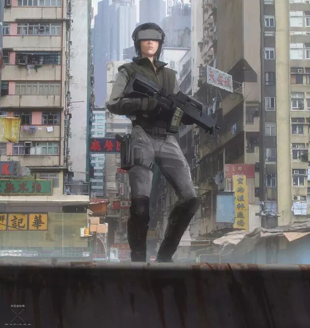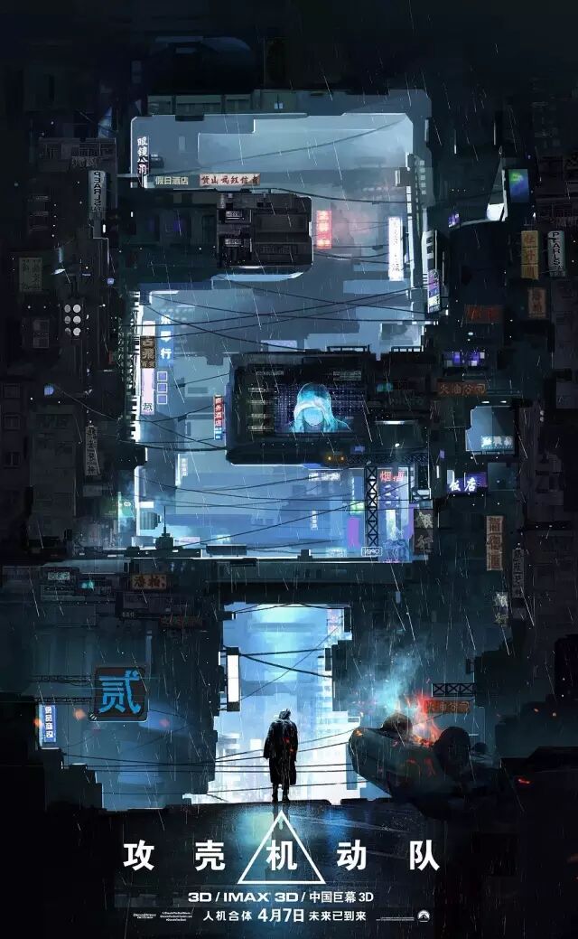 国人概念设计师,科幻影视前期概念,插画。为《攻壳机动队》制作了中文场景计时海报。