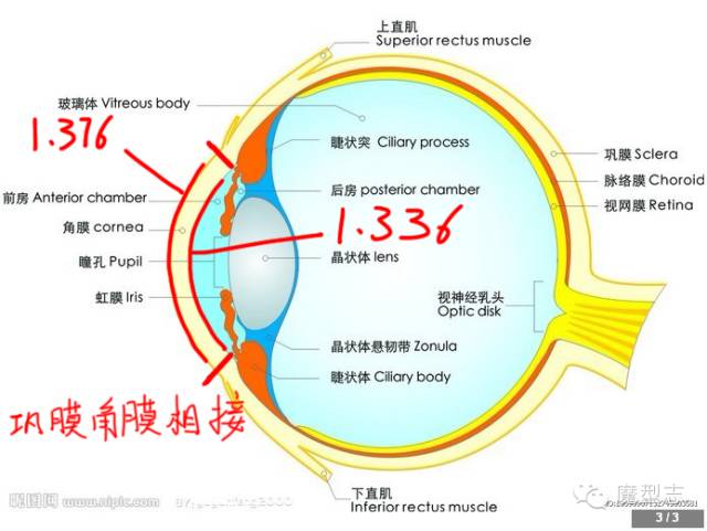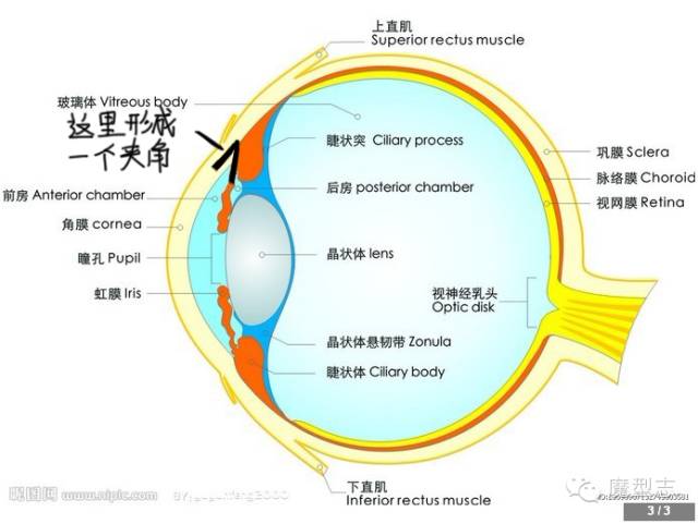 注意虹膜周围的暗部,再次搬出眼球结构图。