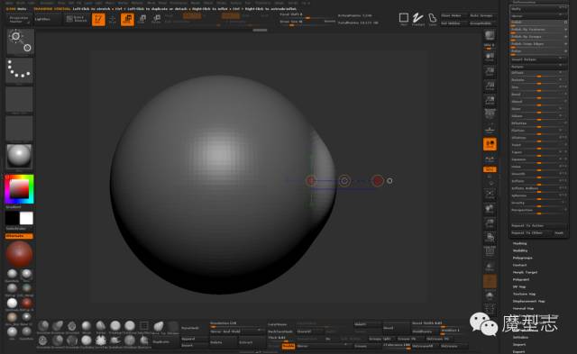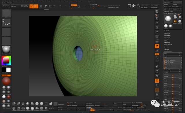 先制作一下虹膜,直接在ZB里创建个球体,然后把极点旋转到到正面。大小先不管,后面做好之后统一缩放一下就OK。