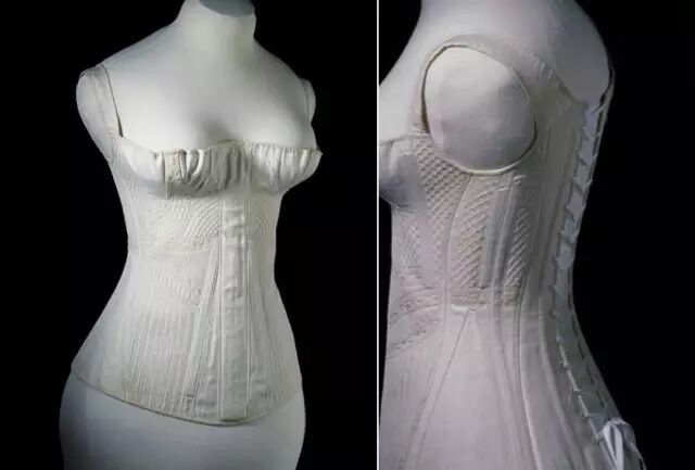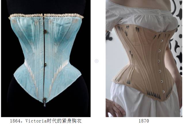 紧身胸衣(corset):到了这个时期紧身胸衣发生了一些变化,它的造型更加精美,形状更加良好,以达到更好束腰而不变形的目的。