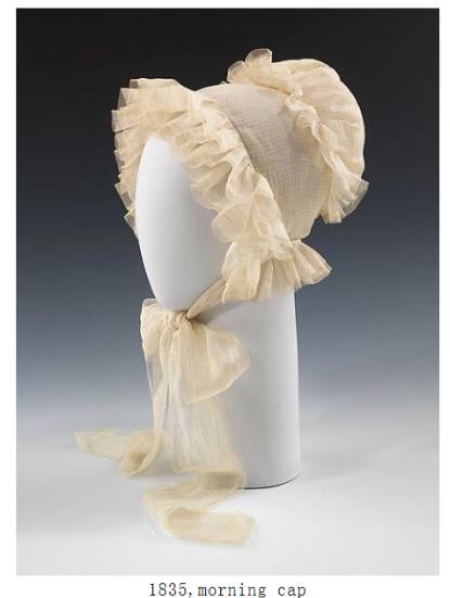 ③软帽(bonnet):煤斗般的造型,紧紧系于下巴下方,紧贴头部佩戴。