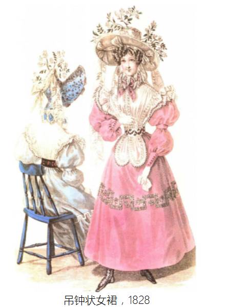 - 1825年:裙摆变大,逐渐发展成吊钟状。