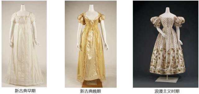 下面是前一个时期——也就是新古典时期和浪漫主义时期女裙的对比图片。
