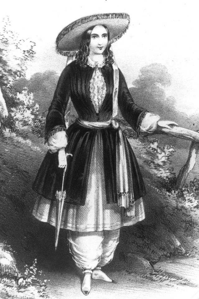 灯笼裤:1851年女权运动时出现,造型是长及脚踝、底部装饰蕾丝褶边。