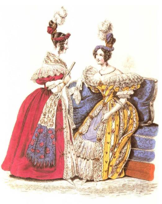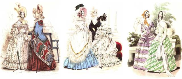 - 1836-1837年:裙子表面装饰越来越多,裙长又一次快到地面。