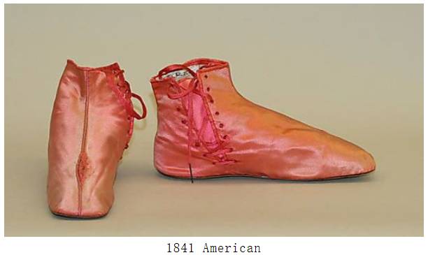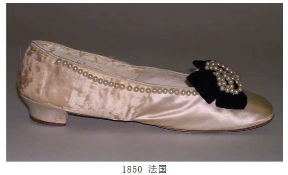①拖鞋:用丝绸、绉纱制成,颜色与裙装相配,鞋跟较浪漫主义时期变高。