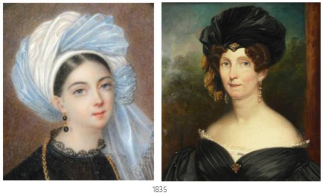 - 1835年:发髻移至脑后回到正常高度。