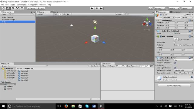 打开Unity编辑器新建3D工程命名为“Cubes Galore”,如下: