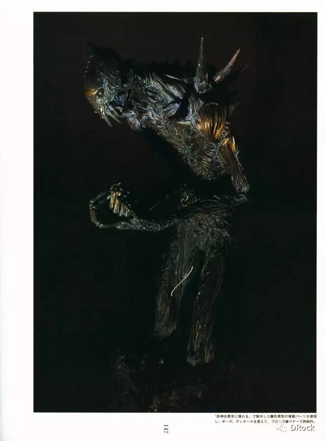 如今除了继续担任玩具原型监修之外,还加入了多部电影的幕后工作。竹谷隆之的个人作品风格在日本几乎独此一家,他的作品阴影厚重,造型有着极大的重量感。兼具生化感、机械感的同时,又有着类似部分美系作品的写实感。