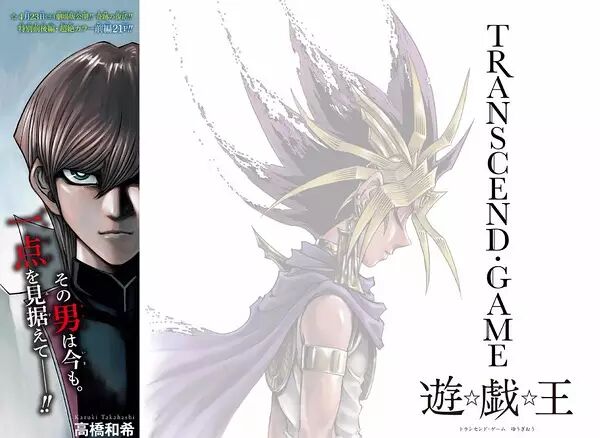 在剧场版上映前《周刊少年JUMP》上也特别刊载了名为《TRANSCEND・GAME 游戏王》短篇前后篇。这对于高桥老师来说时隔了2013年在《JUMP》上刊登的短篇《DRUMP(龙魔封牌)》以来足足2年半,作为《游戏王》的新作更是时隔12年。短篇正式以剧场版为契机,触及了海马公司开发新决斗盘的秘话。而这之中不得不画的就是海马对于阿图姆(暗游戏)的执念与内在的狂气。