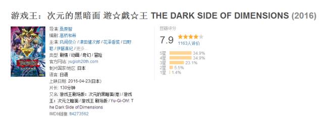 2016年为了纪念在1996年起开始的《游戏王》系列漫画连载二十周年推出了一部动画电影——《游戏王:次元的黑暗面》