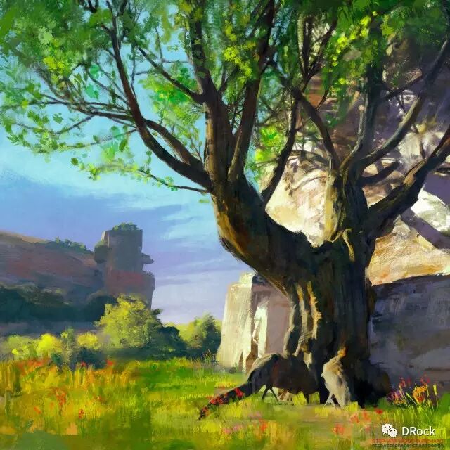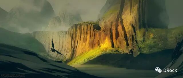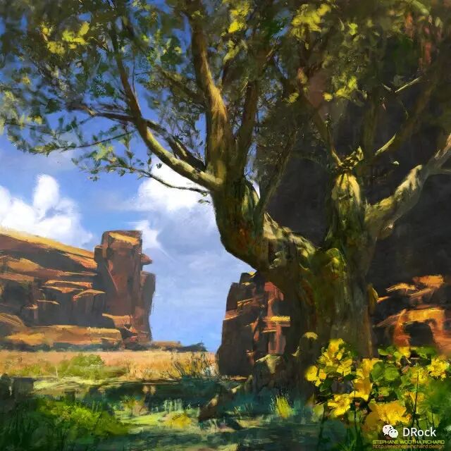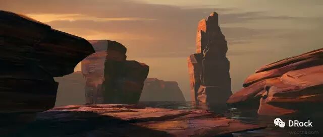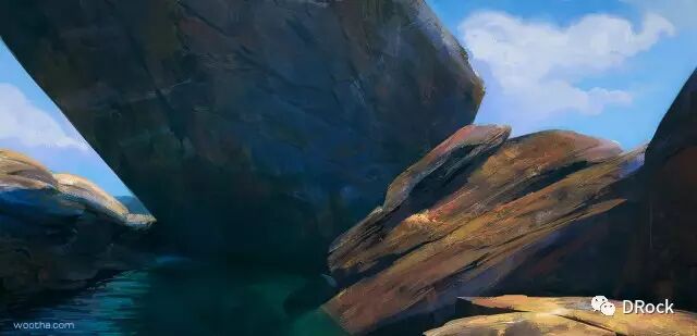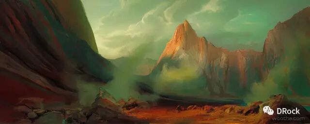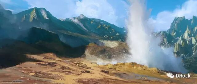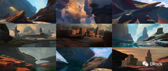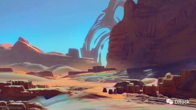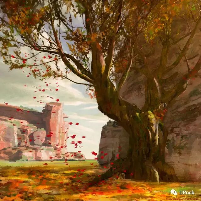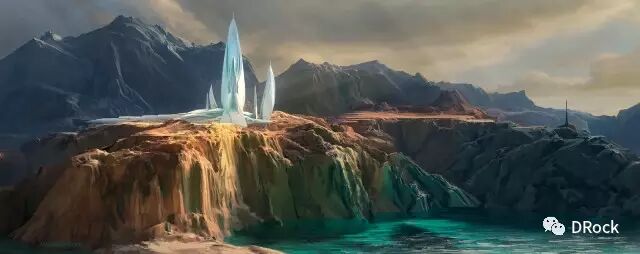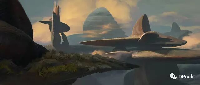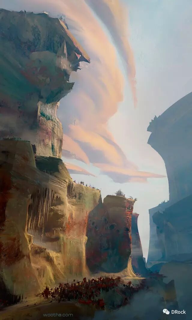 厚涂中带着细腻,场景大气,还有一种踏入无人之境的寂静和神秘的气氛。这些美丽的地方有些是真实存在的地貌姿态,有些是想象加自然的产物,添加上作者独特的描绘后,可以很科幻,也可以很原始,变得尤为动人。