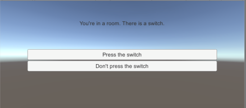 我们已经为大家准备好了示例工程,其中共有两个场景:“Adventure”场景包含了一个很简单的剧情,利用了一些简单的“故事卡”和状态;”Basic“场景则是一个模板,你可以将其作为基础模版来实现自己的文字冒险游戏。