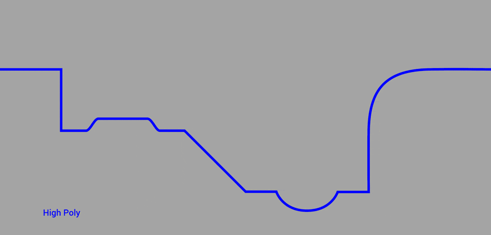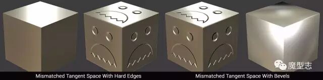 如果你没有同步烘焙的流程,例如,如果你不知道你渲染所需要的是否是Tangent space类型,或者不支持Tangent space,请确保在创建低模时注意这一点。通常情况下,这就意味着你需要在低模上添倒角或者进行软硬边的设置,以确保模型不会出现显示错误,比如黑边等。