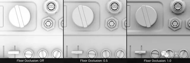 Floor Occlusion设置会向向下的区域附加遮挡,Floor Occlusion 能够帮助添加定向的AO,这个设置通常对于静态的模型贴图烘焙最有用,比如手绘贴图那些同样适合。