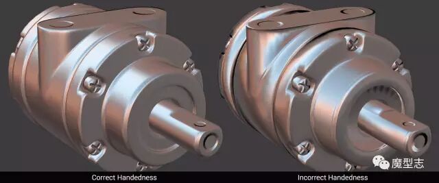 方向性,是我们在制作发现贴图中最常遇见的问题,各种3D应用程序或者引擎都会使用Y或者-Y的法线方向,+Y被称为OpenGL或者Maya的法线类型,而-Y被称为DirectX或者3Dmax的类型。在烘培时候需要注意。