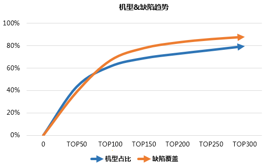 为了保障兼容性测试的有效性,甄选最能代表市场的测试设备成为了团队面临的第一个问题。测试设备选择需要一个科学的范围,很多人觉得测试设备越多越好,在不考虑其他成本的情况下这的确是一个无限接近正确的答案。而事实上这是一个不可能完成的任务,投入越多测试设备,测试成本的边际效应表现越明显。通过腾讯游戏大数据对机型和缺陷进行统计,我们选择了TOP100的测试范围,这部分机型在市场占比接近60%,兼容性缺陷触发率在70%左右,硬件和品牌覆盖面完整,此外,这部分设备上发现的问题有一定代表性,也便于开发更有效地修复和解决问题,性价比综合评定下最高。在服务腾讯游戏的过程中也获得了项目组的认可,最终被应用到腾讯游戏的测试标准中。