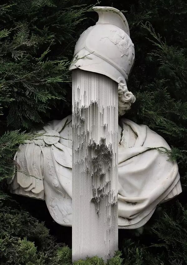 虽然这个说法听上去有些毛骨悚然,但不得不说在波普、蒸汽波、数码故障艺术里面都会喜欢对人体或雕像的躯干进行切割,并且着重对脸部进行艺术处理。