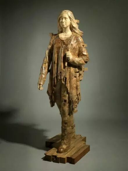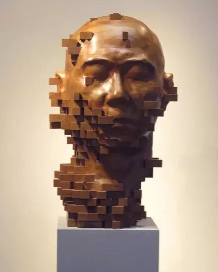 其木雕作品,可视作立体化的数码故障艺术变体。