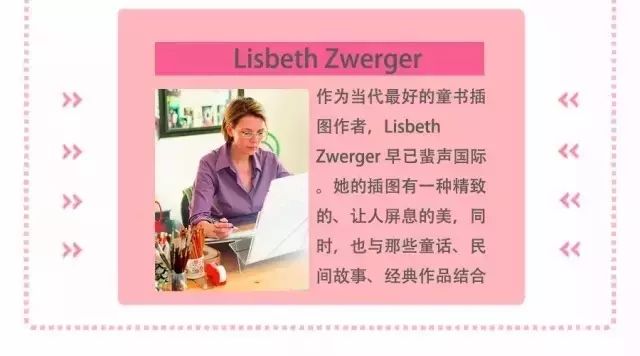 Lizbeth Zwerger,出生于奥地利。父亲是版画家,自幼喜爱绘画,毕业于维也纳的美术学院。1977年因《怪孩子》一作初露头角,曾获波隆那插画奖及BIB世界绘本原画展优秀奖。绘有《汉赛尔与格莱特》、《圣诞节颂歌》、《天鹅湖》等作品多数。1990年获国际安徒生奖。现居维也纳。她的画非常干净剔透,她的作品还有《绿野仙踪》和《艾丽丝漫游奇境》。