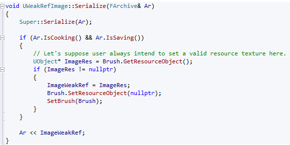 如果在 Editor 中设置了 Image 属性,同时又希望销毁这个贴图,Epic Games 的王弥提供了一个思路,可以在 Cook 阶段解除 UImage 和 UTexture 的引用关系,从而这个 User Widget 的 CDO 不会引用到 UTexture。