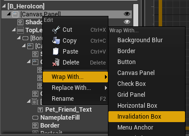 使用 Invalidation Box 封装 User Widget,从而缓存 Slate Tick 数据,不需要每帧都进行计算。操作方式如下所示: