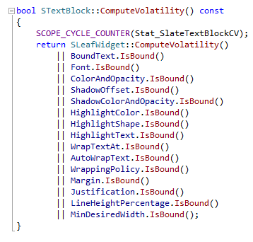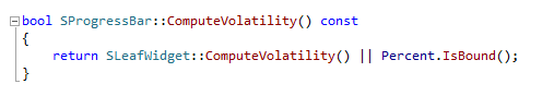编辑器中 Is Volatile 选项可以用于显式地设置 Volatile,用于提高 Invalidation Box 的性能。有时 Widget Binding 会隐式地将 Widget 标记成 Volatile,导致这个 Widget 每帧都会 Tick,从而降低性能。