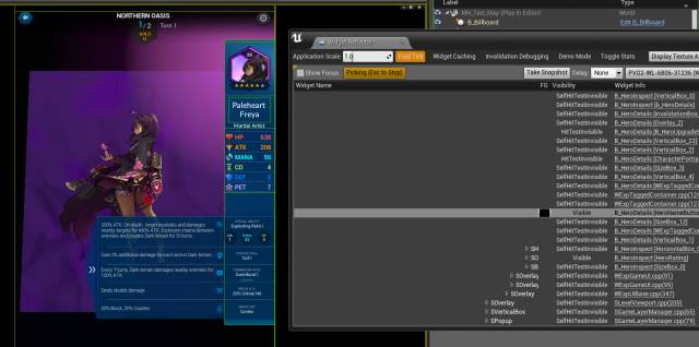 下图演示了一种特殊情况,英雄图标是一个重复使用的 User Widget,每个都被封装进了 Invalidation Box。整个英雄列表是一个 Scroll Box,当 Scroll Box 上下滑动时,英雄图标对应 User Widget 的 Transform 信息也会发生变化。