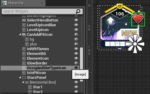 上图中的 LevelUpIcon,平时处于隐藏状态,当角色升级时会显示出来, LevelUpAnim 通过改变 Widget 的位置实现动画效果。当渲染这个 Image 时,由于位置一直在变化,会导致 Invalidation Box 每帧都在重新计算整个 Widget Tree 的 Cache,性能比较低。此时可以将这个 Widget 设定成 Is Volatile,从而提高性能。