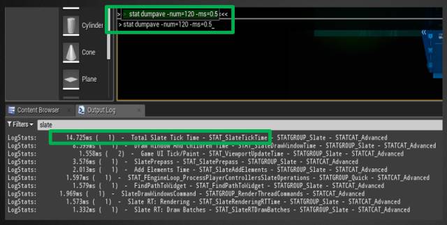 Stat.Slate 会创建一个未优化的 UI,并且统计线程会将这个 UI 的性能数据算入 Slate 开销,因此表格中的时间数据和真实数据相差很大。建议通过如下命令查看统计线程变量的时间开销: