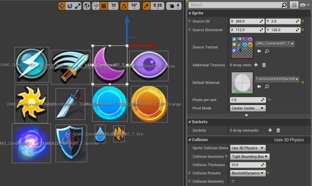 在 UE4 中的 Sprite 很方便地支持合并贴图的编辑和使用。