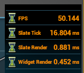 开启 Invalidation Box 后,Slate Tick 时间大幅降低,由于应用程序开启了 Mobile HDR,瓶颈在 GPU 上,因此 FPS 提升不大,如下所示: