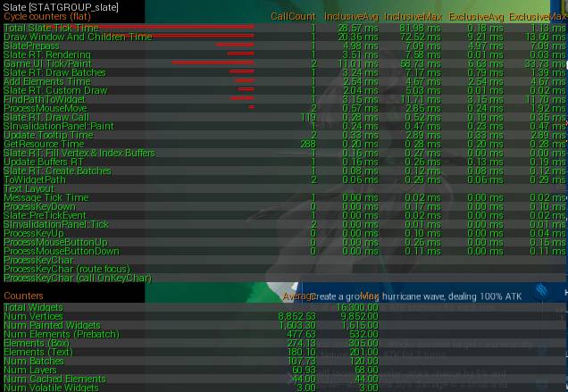 Num Painted Widgets:在游戏线程执行 OnPaint 的 Widget 数量。