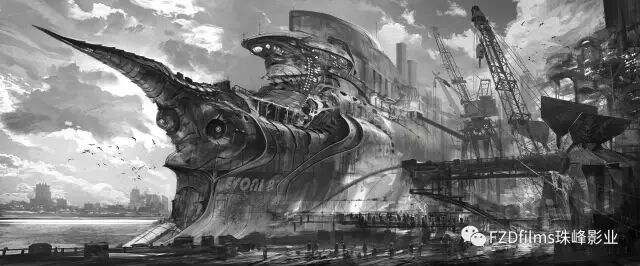 影视设计没有必要画的很精细(影视宣传图除外),就这一点在之前《概念设计不是单纯的艺术》一文中已做阐述,即“重想法而轻画”,设计师通过读剧本或看故事板找到需要设计的场景、人物、道具、及重点特效镜头,然后再分工设计,最开始会完成一些粗略镜头气氛稿、角色设定和粗略的场景概念等;然后根据导演要求进行中后期的详细设计(参考上文)。