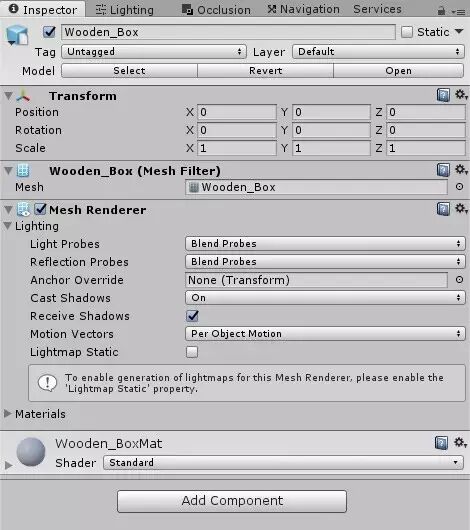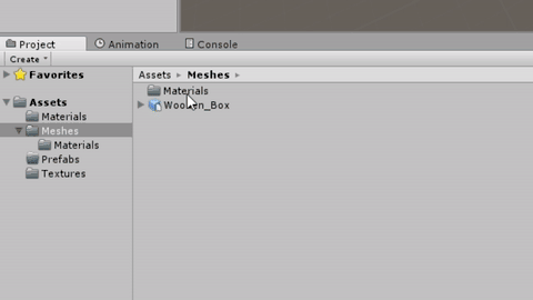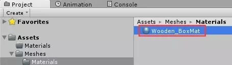 Materials文件夹中包含导入的网格所使用的材质。无论此网格在Blender中是否使用了材质,在.obj文件导入Unity后,它都会自动创建一个名为“网格名字+Mat”的材质。