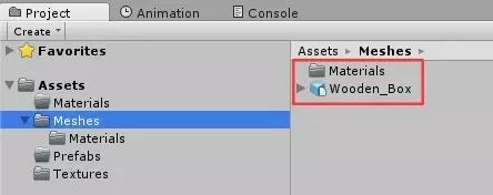 资源导入Unity后,会出现一个.obj/.fbx文件和一个Materials文件夹。如果直接导入.blend工程文件,Unity会自动将其转换为.fbx文件: