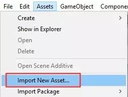 3. 或者直接点击菜单项Assets > Import New Assets… 导入资源。