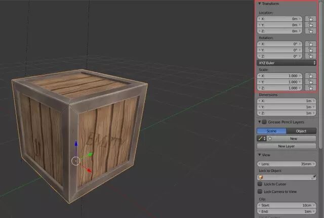 如果想要对导入资源进行缩放、移动或旋转,.obj资源可以选择父对象并更改其Transform设置(或者使用变换工具)。而.fbx与.blend资源直接操作其自身的Transform设置即可。