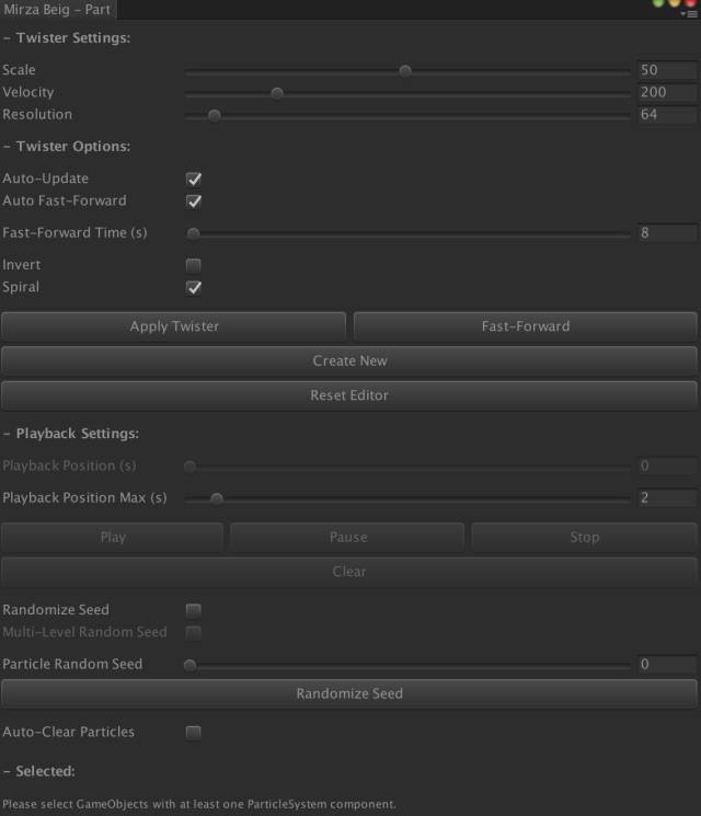 另外该插件还提供了多个编辑器界面,用于在Unity编辑器中直接对粒子的缩放、加速度、分辨率、刷新模式、播放设置等多个属性进行调整,无需编写代码即可完成。