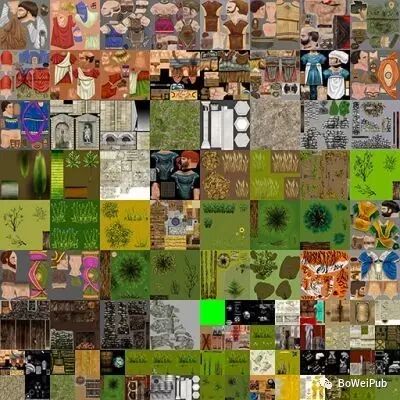 如果一些模型引用的材质除了Texture其他参数都相同,我们可以将这些模型引用的Texture进行合并,将它们合并成一张更大的Texture。这样所有的模型都可以引用相同的材质,然后通过只设置一次渲染状态进行绘制了。虽然Draw call数量没有减少,但是避免了渲染状态的切换,同样达到了合批渲染的目的(原理请参看上一篇文章《图形渲染及优化—Batch》)。这项技术称为Texture atlasing,这是美术工作中最常用的方法,具体做法有大量内容可查。