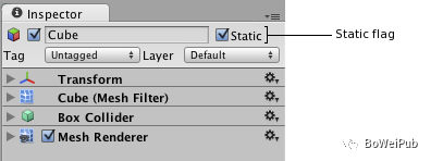 如果我们的游戏场景中有一些共享同一材质的模型存在,并且这些模型一直都不会移动、旋转和缩放。我们可以将这些模型设置为Static:
