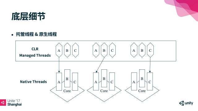 首先区别于协程,线程是并行的,是利用了硬件的多核特性。而协程是并发的,它其实还是在主线程执行。C#的线程是基于.Net的实现,Mono进一步细分操作系统的进程到一个轻量级的托管子进程,这就是AppDomain。而在AppDomain中又可以存在一个或者多个的托管线程,也就是Sytem.Threading.Thread。