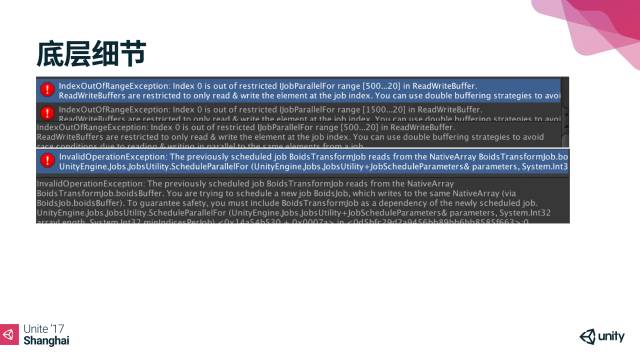 除此以外C# Job System还提供了对线程安全相关的检查及报错提示机制,确保开发者在开发过程中安全和高效。