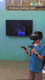 在展台上,观众可以体验到TPCast Vive无线套件的多用户BE版,支持VR游戏中的多人无线对战。Vive在去年11月1号宣布了和TPCast的合作,让Vive成为第一个无线化PC VR。两个星期前Vive也宣布和英特尔合作,用成本更低的方法来把VR无线化。这些都是让VR更加普及、方便的趋势。