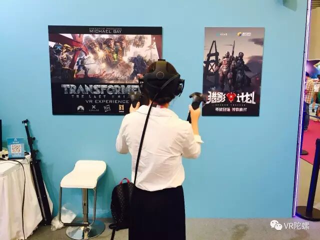 在电影IP方面,Vive今天的展台上能看到两个大IP,《蜘蛛侠》和《变形金刚5》。这两部电影刚刚上映或者即将上映,同时都推出了新的VR体验,同步登陆Viveport和Vive Arcade。这代表好莱坞和VR越来越紧密的结合。在过去一年中,基本上每一部大片出来都会推出3、5分钟、或者10分钟、20分钟的VR体验,这个会变成标准。以后的大片如果没有VR内容,会让人觉得很奇怪。