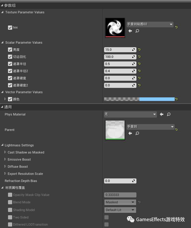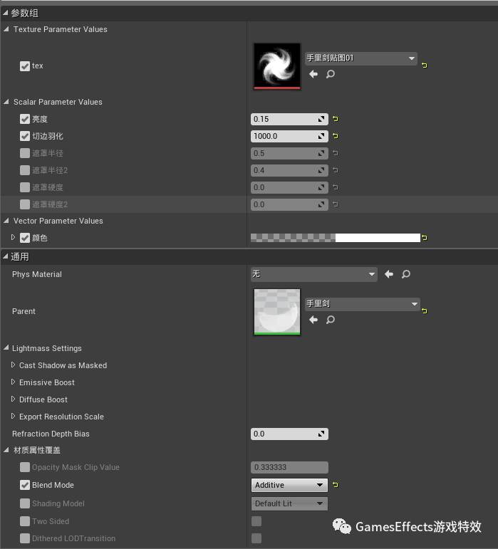 我用Dynamic来控制手里剑风刃的折射强度,扭曲,以及风刃的转速,都在粒子编辑器里面来有效的控制,用下面的贴图,让其手里剑更加有风刃的感觉
