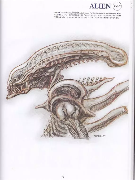 当你看过异形之父H.R.Giger创作的一系列异形原画后,你会发现竹谷隆之的原型把异形身上的黑暗美学展现得淋漓尽致,连H.R.Giger本人在看到竹谷隆之版的异形后也感到吃惊。